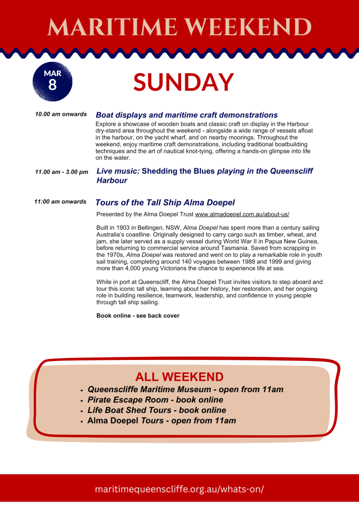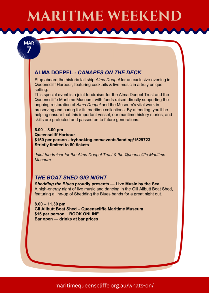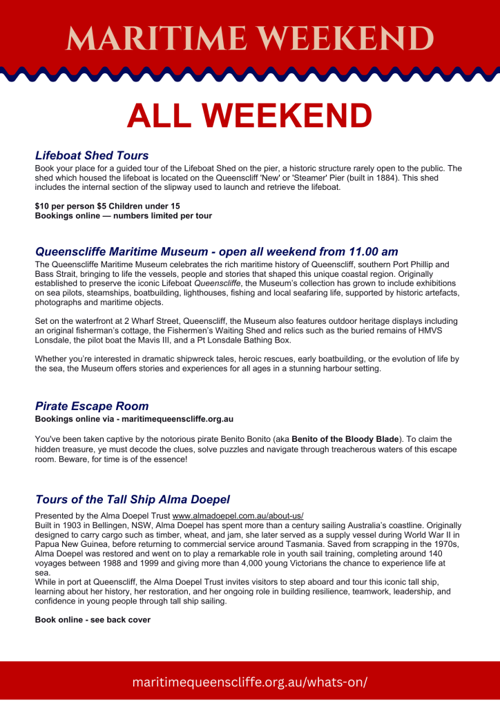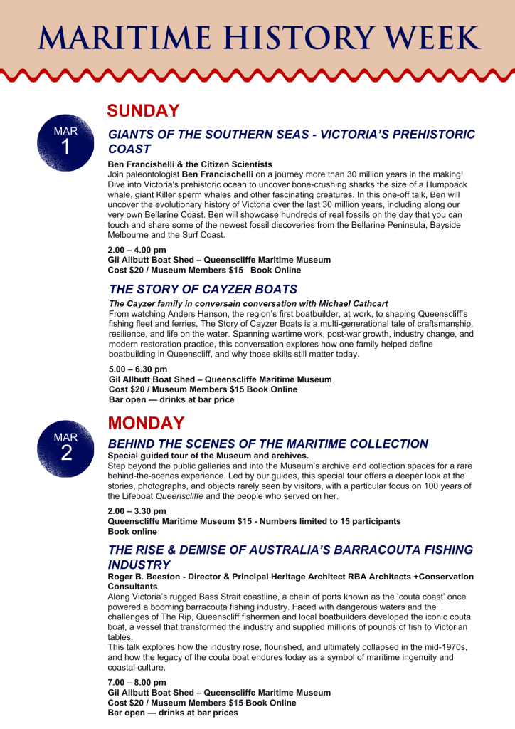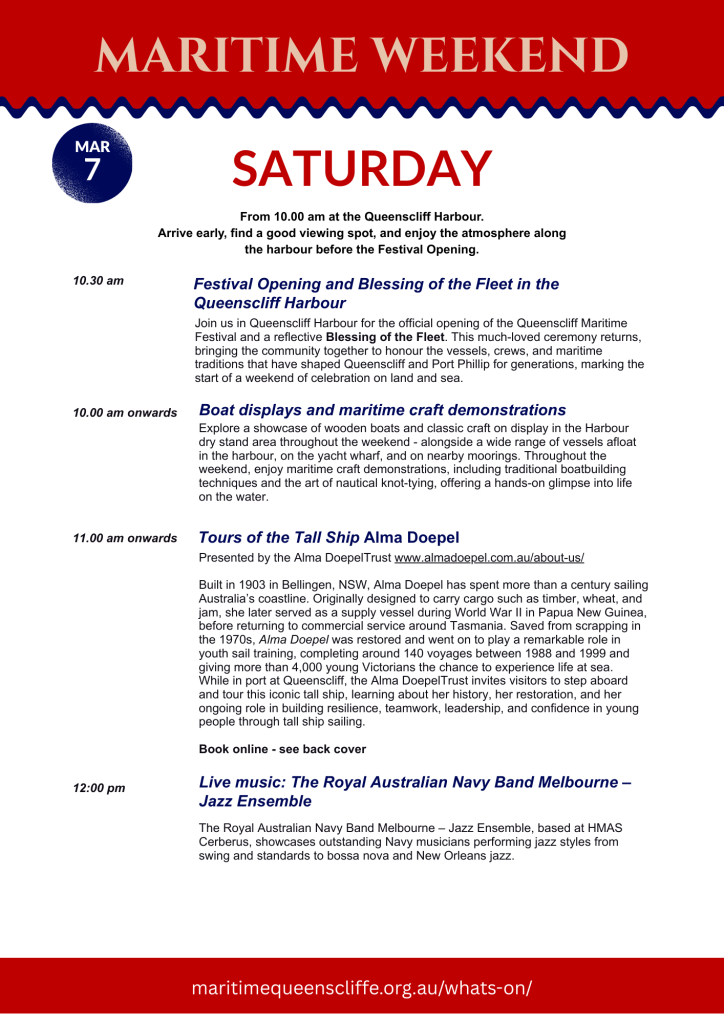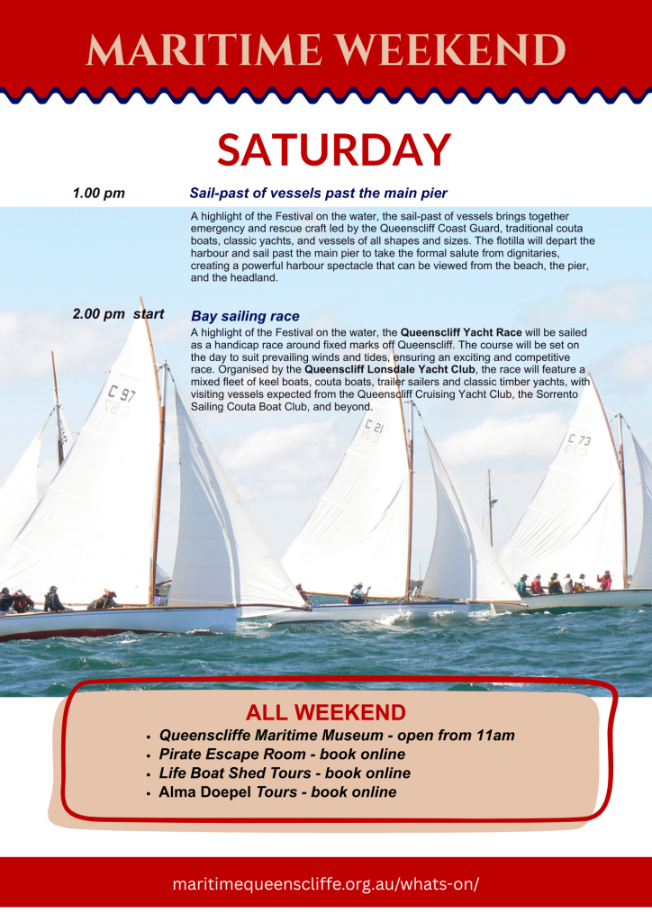 We look forward to welcoming vessels, crews, and visitors for a memorable weekend celebrating boats, craftsmanship, and Queenscliff’s maritime traditions.
